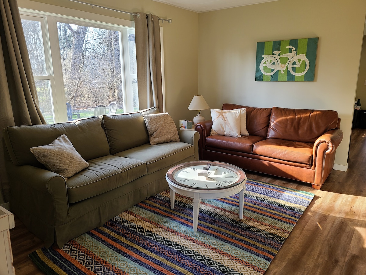 Take a break and unwind at this peaceful beachy bungalow. Our place is a 3-minute walk to the private beach located in Woodland Beach Association. It's a small space to get away to relax and enjoy the beach without spending a lot of money. New outdoor private hot tub just installed October 2024. Soak in our claw foot bathtub. Perfect place to stay for a couples get away, working remote, or working in the Monroe area. Cozy! Private! Romantic! Perfect for the fisherman as well.