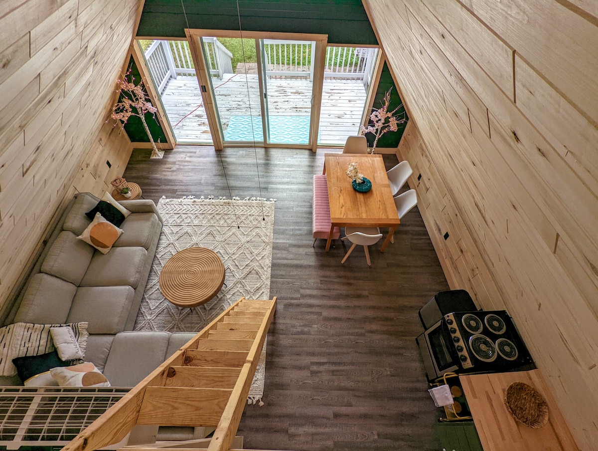 现代小木屋,僻静的院子,全新热水浴缸!