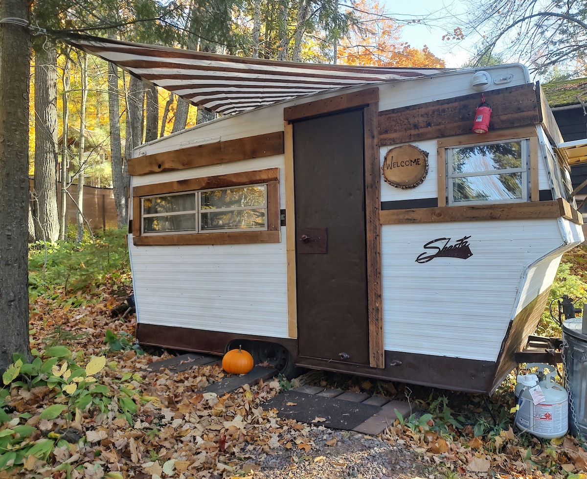 An outdoor enthusiasts dream awaits at Rockhound Hideaway's Sodalite Shasta with opportunities for snowshoeing, skiing, hiking, and ending the day with a steamy sauna. This off grid, cozy 14' trailer is situated on a two acre lot with two other rentals and my full time residence on the edge of the Ottawa National Forest. A short walk to Black River Harbor, the North Country Trail & Lake Superior, this is a perfect getaway for those seeking a rustic yet comfortable stay with a campy feel.