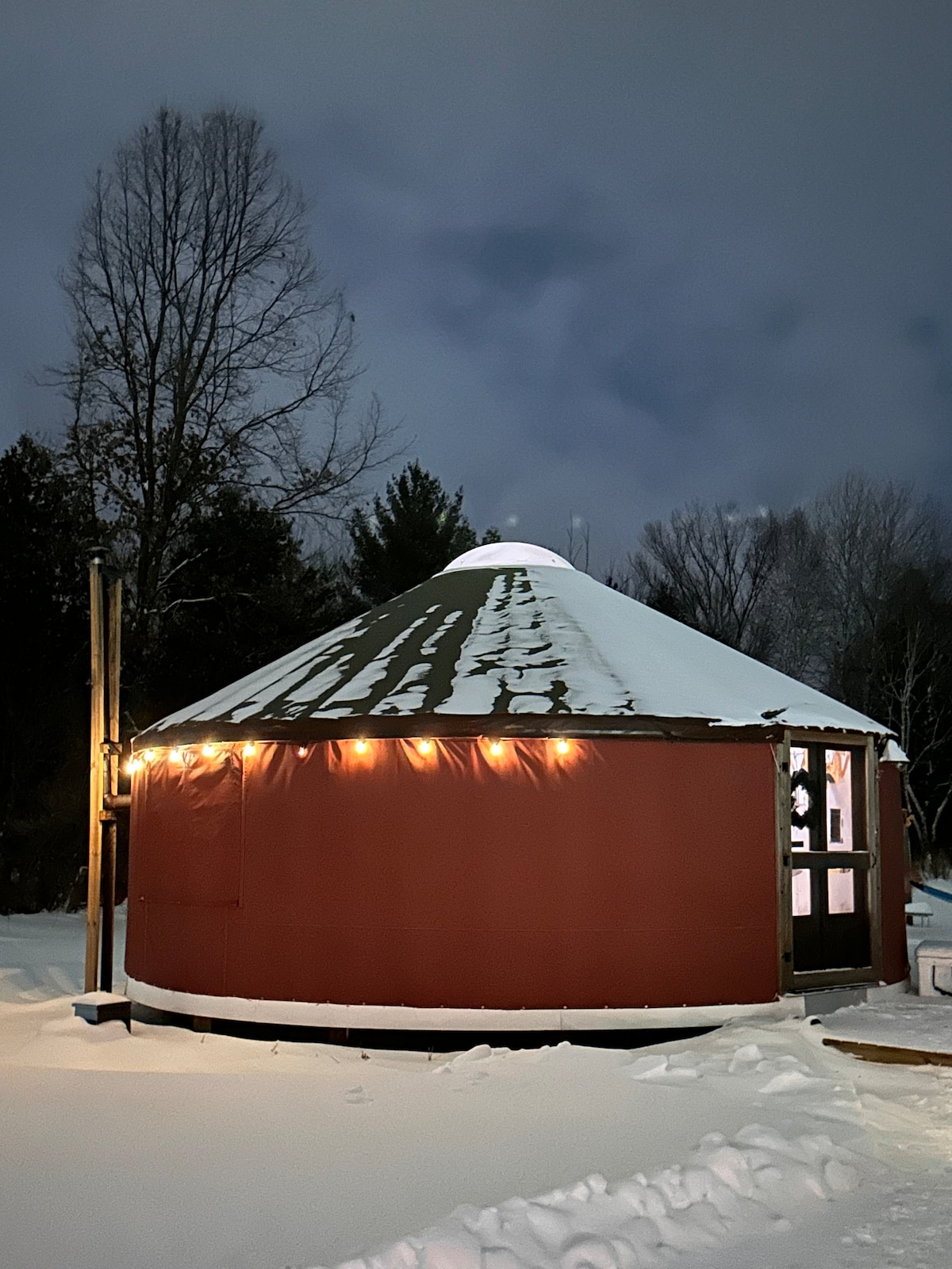 Cozy up in a luxury yurt nestled in a wooded forest just off the beaten path. Breathtaking sunrises over the meadows of Grass River. We are located minutes from Torch Lake, Short’s Brewery and the town of Alden. Reconnect with nature at this unforgettable escape. This yurt is unlike others due to its amenities. The property is easily accessible and has plenty of room for a truck and trailer. It features an electric mini split for heating and cooling to keep you comfortable no matter the season.