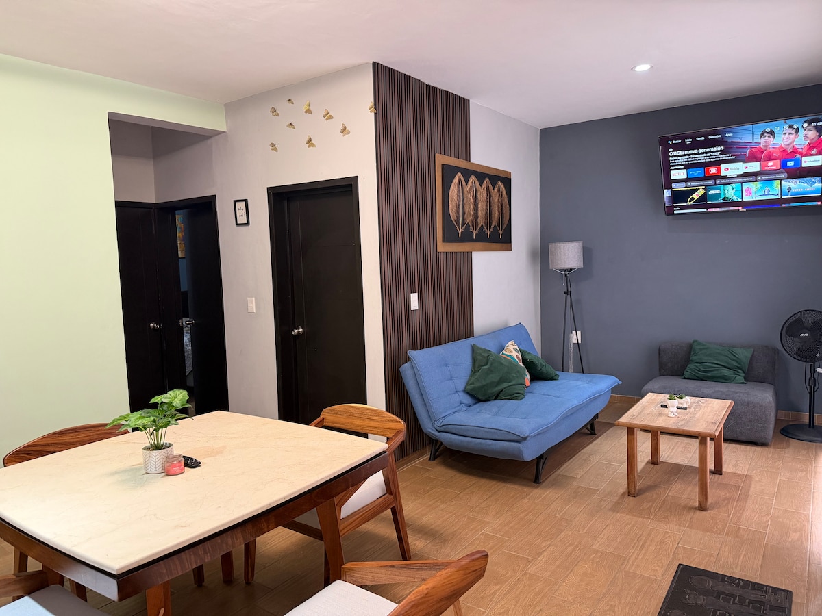 Relájate en esta escapada única y tranquila. Vienes de paseo o de trabajo?? esta opción es para ti. Loft con todas las comodidades para pasar una estancia increíble. En una zona exclusiva donde tienes las mejores vialidades y acceso a cualquier punto de la ciudad. El departamento esta totalmente equipado, cuenta con una cama matrimonial y un sofa cama individual, un escritorio de trabajo, wifi, cocina totalmente equipada, áreas de esparcimiento y estacionamiento exclusivo para un automóvil.