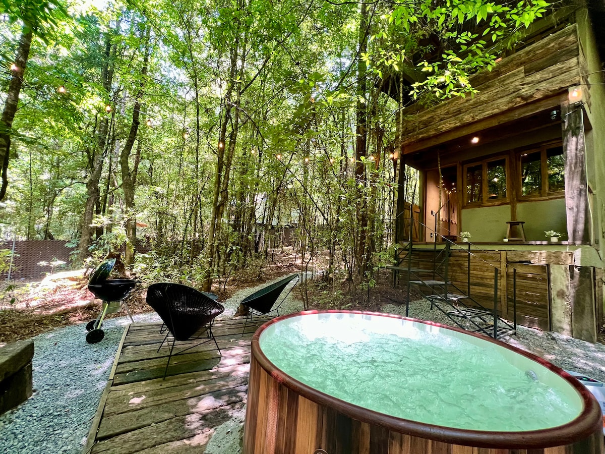Sumérgete en este santuario místico donde puedes reconectar con la naturaleza y recuperar la paz y la tranquilidad, lejos del caos de la ciudad, construido sobre un árbol, capaz de alojar a 4 adultos. Con su arquitectura única y amenidades exclusivas; hamacas y acceso al mirador y la palapa; el aroma suave, pero permanente de la madera e, incluso, la forma como debes caminar dentro de ella, la convierten en un lugar excepcional.