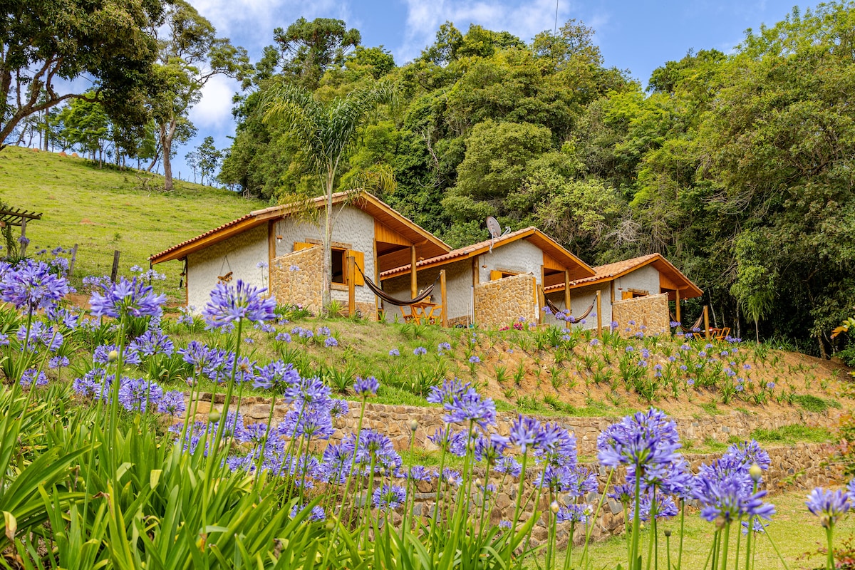 Construída em meio à natureza, cercada por uma exuberante mata, nossa cabana é um refúgio perfeito para você descansar e aproveitar a natureza com total segurança, conforto e privacidade. Além de uma vista 360º para a mata, sonoridade e acesso ao rio que corre pertinho, a cabana é equipada com lareira, cozinha completa, extensa varanda, rede e uma banheira com um visual único. Tudo cuidadosamente pensado para garantir uma experiência inesquecível.