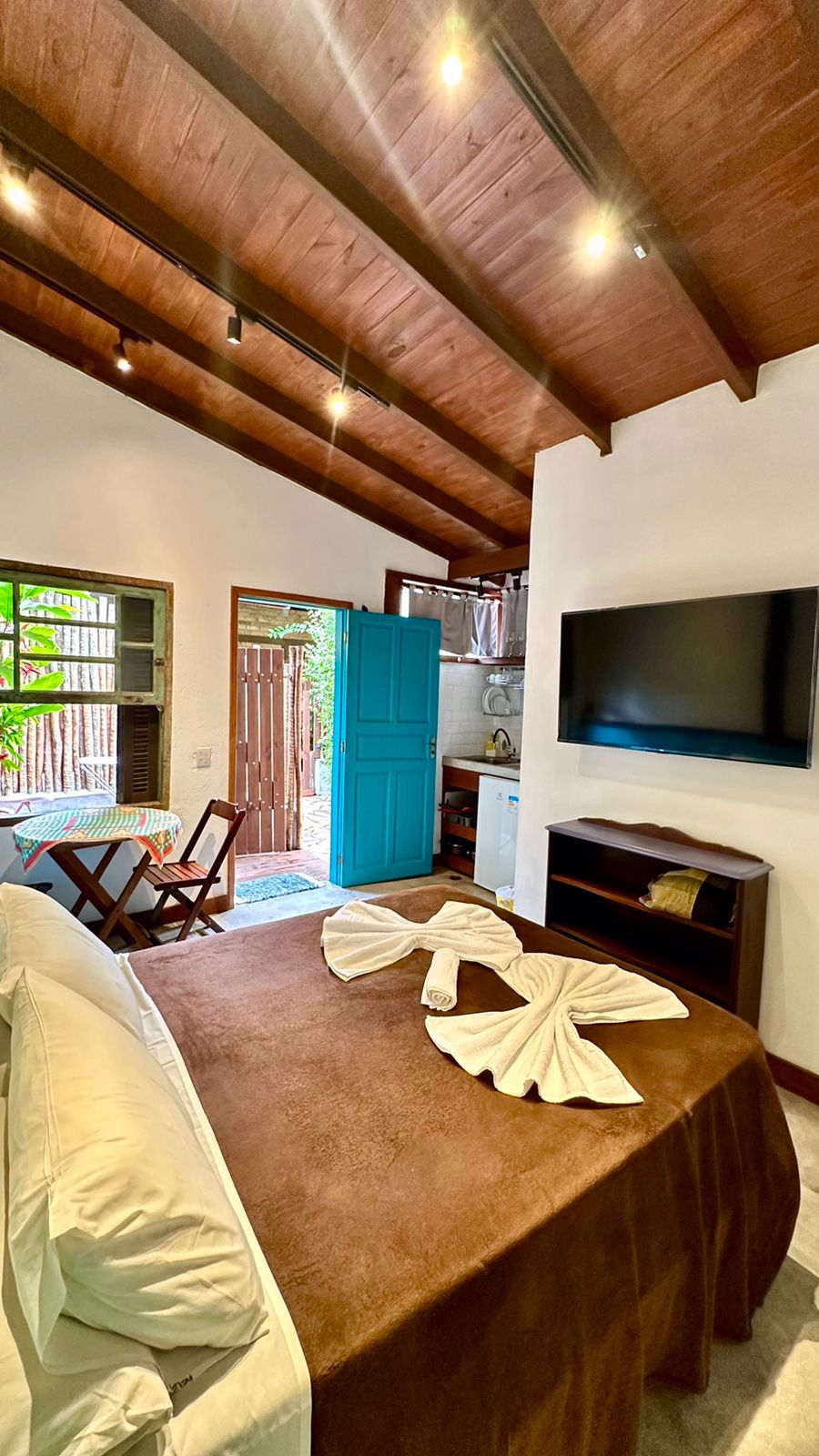Queridinho pelos hóspedes, o Chalé é aconchegante, confortável e rústico, ideal para casais buscando tranquilidade e privacidade, sem estar distante dos atrativos do Centro Histórico de Paraty. Todo em madeira, feito por nós, juntamente com artistas locais da carpintaria. Conta com cozinha equipada, Wi-fi, roupa de cama de qualidade e redário coberto em meio ao jardim. Um espaço exclusivo e cheio de charme!