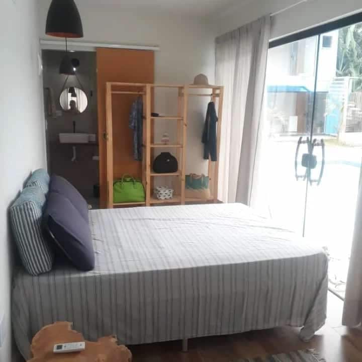 Nossa suíte em propriedade compartilhada é muito confortável e bem equipada. Tem cozinha, TV com Chromecast, ventilador, ar condicionado, armário, roupas de cama e banho, cadeiras de praia, cooler e guarda-sol. Tem varanda privativa com rede, mesa e sofá. Na propriedade há chuveiro, deck, lavanderia, jardim e espaço para Luau compartilhados. Estamos a 800 m da praia da Lagoinha e a 300 m das ruínas e cachoeiras. Há restaurantes, sorveterias e supermercados nas proximidades.