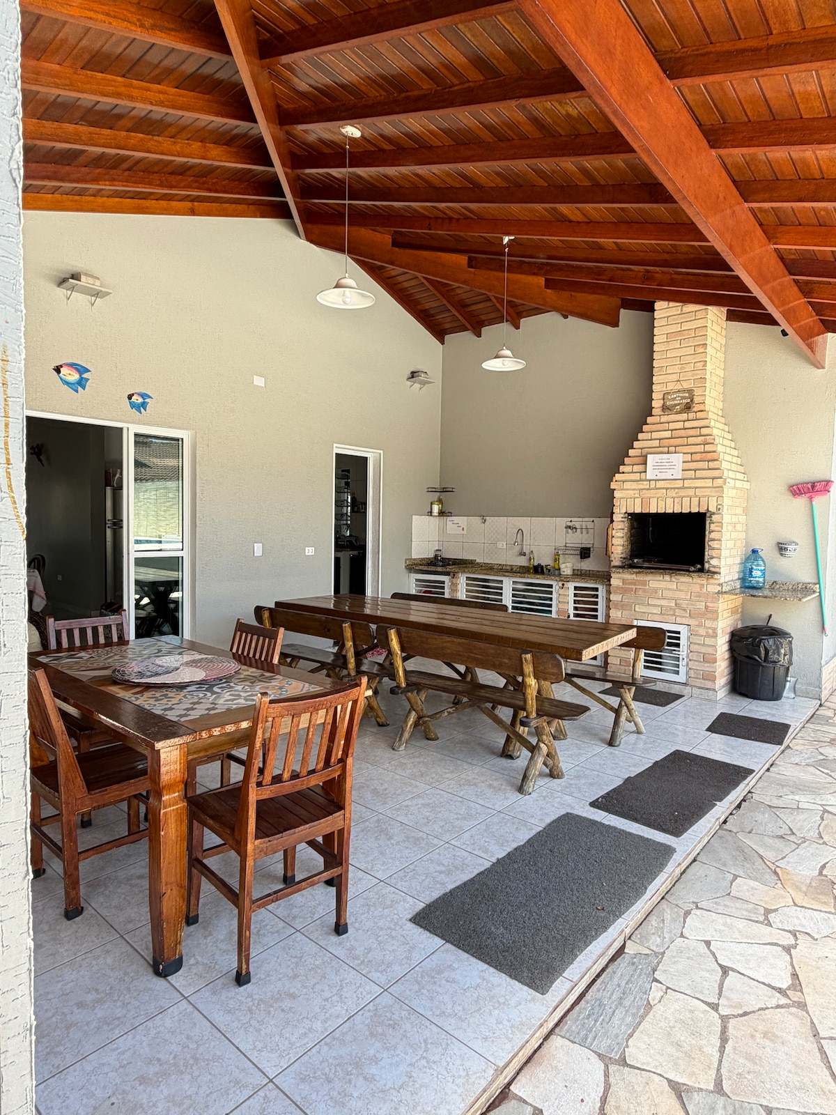 🏡 Casa espaçosa em condomínio fechado com segurança 24h — ideal para famílias e eventos no Litoral Norte de SP! Acomoda até 30 pessoas para pernoite (20 em camas e o restante em colchões). O valor anunciado é para até 16 hóspedes, podendo haver ajuste conforme o número de pessoas. Para eventos, é permitida a presença de até 60 convidados adicionais, totalizando até 90 pessoas no local (incluindo equipe e convidados), mediante autorização prévia.