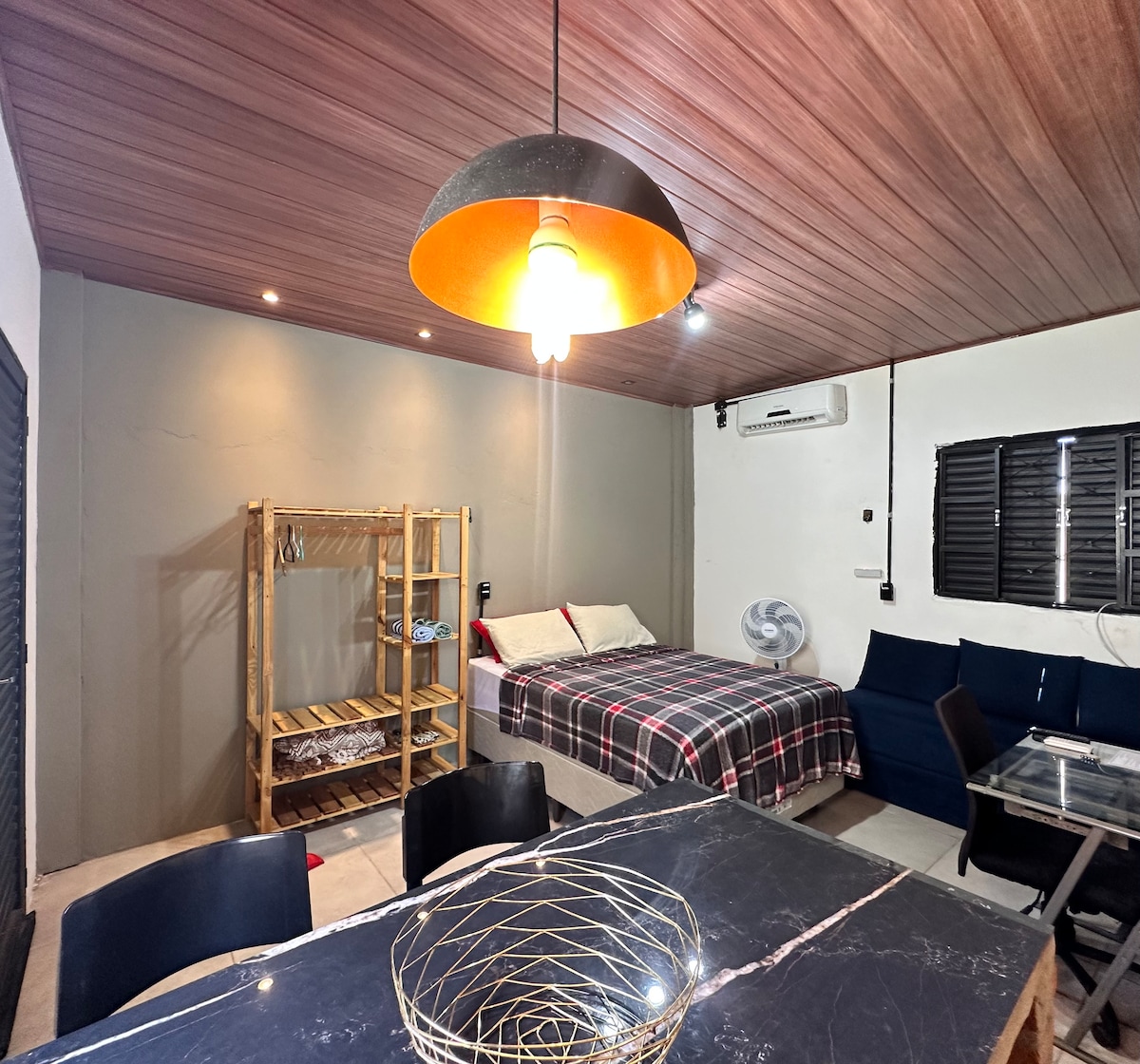Um loft funcionou com todo requinte para uma estadia tranquila e agradável, Tv com Netflix, Cozinha com utensílios domésticos para preparar suas refeições, ao lado de padarias, supermercados e farmácias. Atenção PISCINA está disponível! Temos portaria 24 horas, o check-in é feito direto na portaria a qualquer hora após às 15:00hs, mediante cadastro feito antecipadamente pelo anfitrião. OBS.: Não disponibilizamos sabonete em barra apenas sabonete líquido.