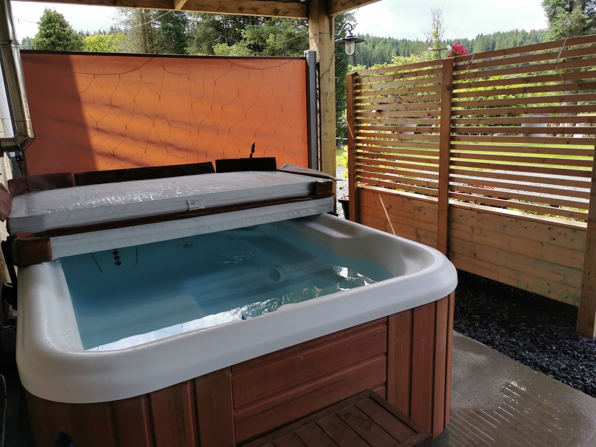 Kick back and relax in this calm, stylish space in the heart of Glenariff Forest. The Getaway is a modern, stylish apartment with its own private hot tub and outdoor living area. It's one of our two listings on Airbnb. Both are located in the grounds of our home, next to Glenariff Forest Park. Hot tub use is an add on charge - please ask for details. Campbed/infant cot available - Please request. Space for one medium sized or two small pets only.