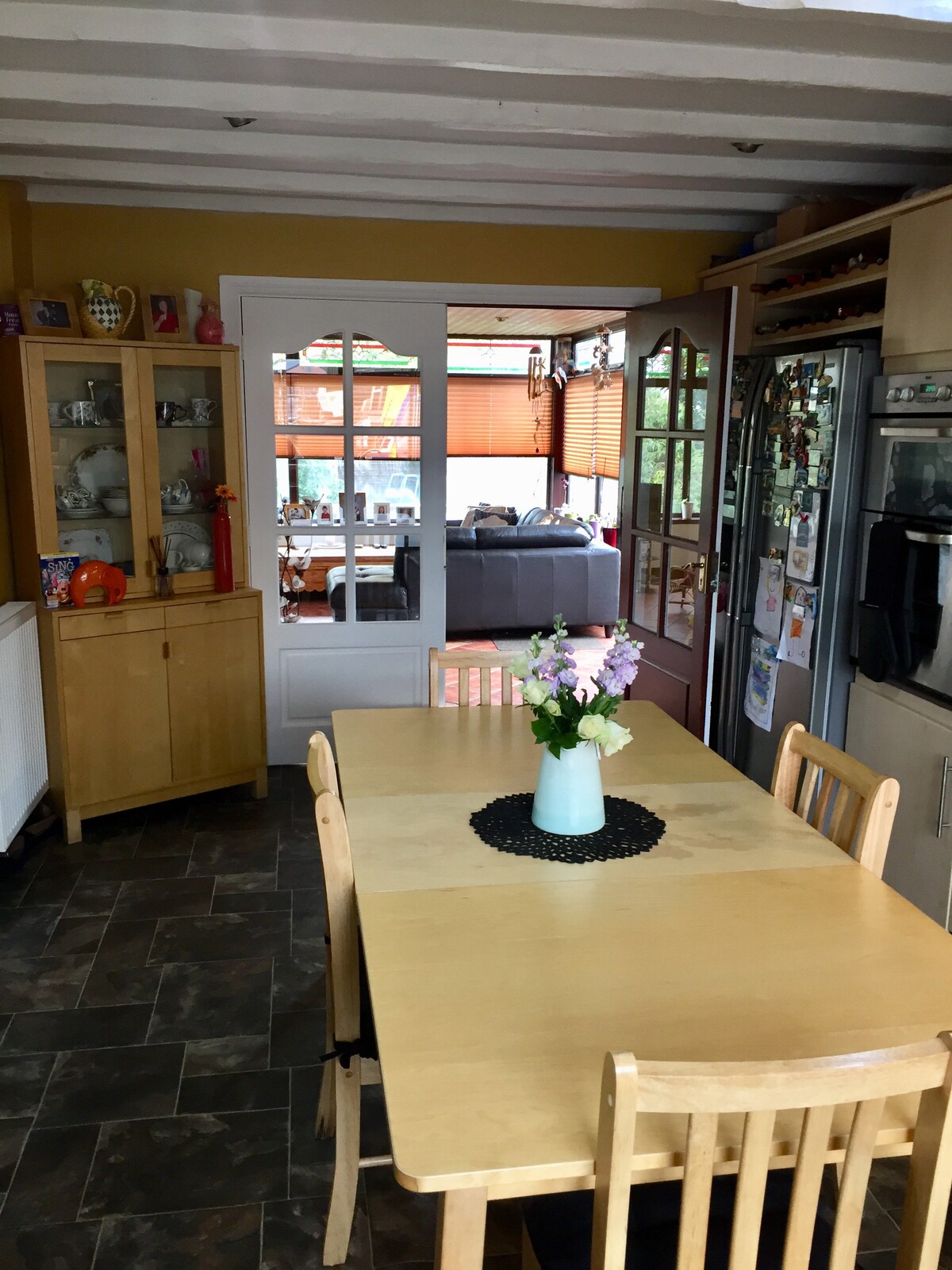 Self-catering accommodation with four rooms. All newly decorated with fully fitted kitchen and dining area with lovely views. Carpeted living room also with lovely views, 45" TV, double bedroom and large bathroom with electric shower. We live in a country area 15mins from the airport, 3miles to Antrim and Randalstown with shops, restaurants and pubs. 25 mins to Belfast and 45 mins to the North Coast. Castle Gardens only 5 mins drive with beautiful gardens and walks to the lough shore.