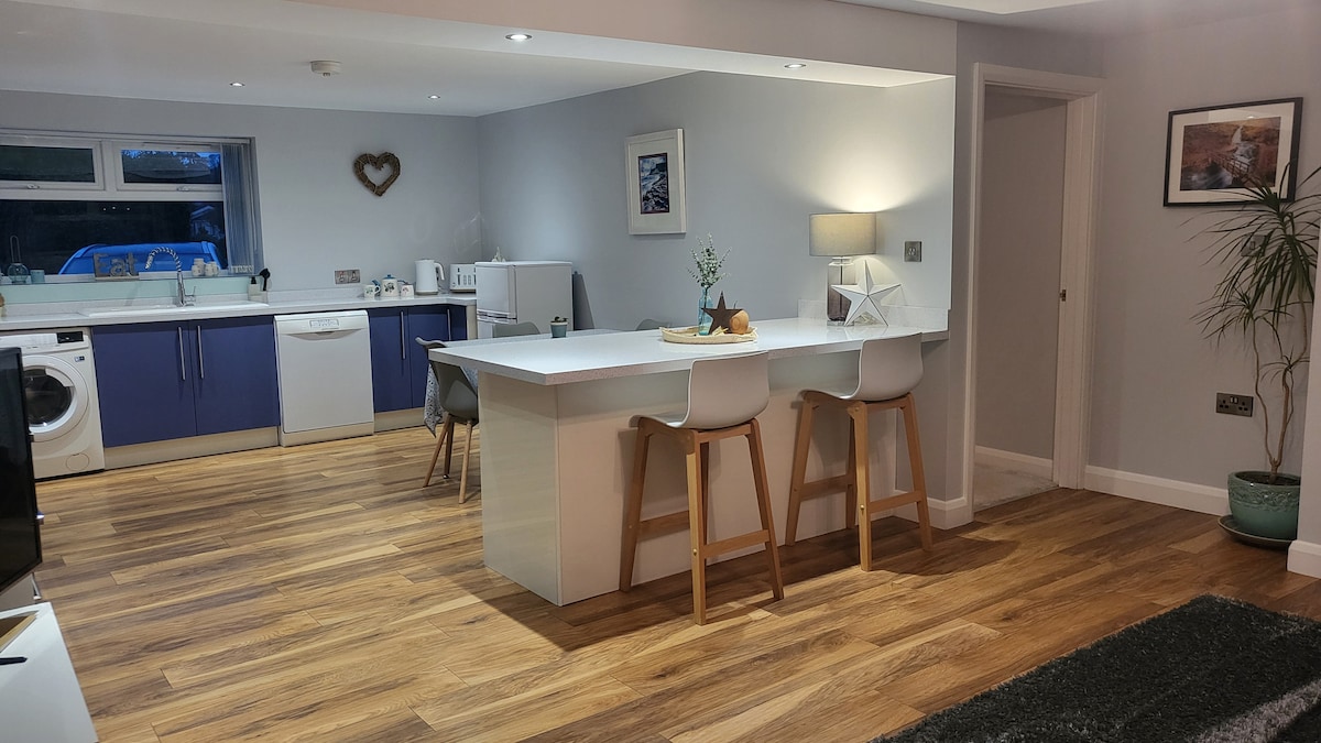 This stylish place to stay is perfect for couples or small families who wish to explore Northern Ireland. With close amenities in the village, which include a small shop, Chinese take-away and a friendly traditional Irish pub with fantastic pub grub! The train station is a short 15 minute walk away. Coastline five minute drive away, which will take you on beautiful scenic routes to Belfast and afar, where you can explore Titanic's birth place, Giants Causeway and much, much more!