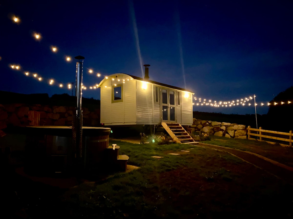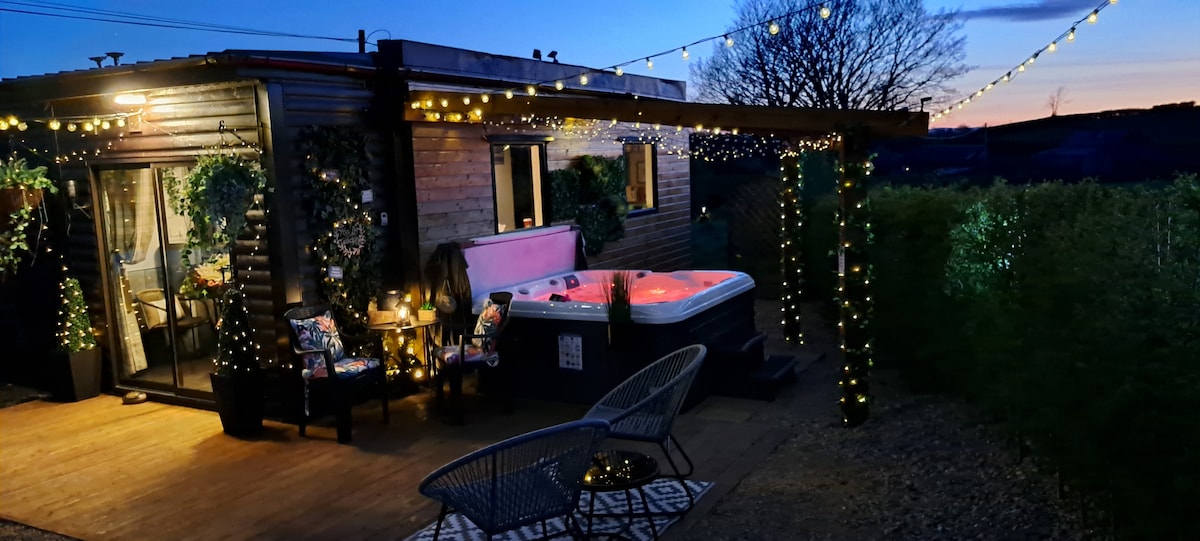 Come stay in our Secluded secret garden, stylish cabin on a working dairy farm, perfect for 2 (sleeps 4 if needed). Enjoy a private, covered 5-seat hot tub, stunning countryside views, fire pit, and cozy patio. Inside features a comfy double bed, sofa bed, and peaceful décor with modern touches. NO PETS . Ideal for relaxing, stargazing, and escaping the hustle of everyday life. Includes a local guidebook with top nearby dining and activity recommendations.