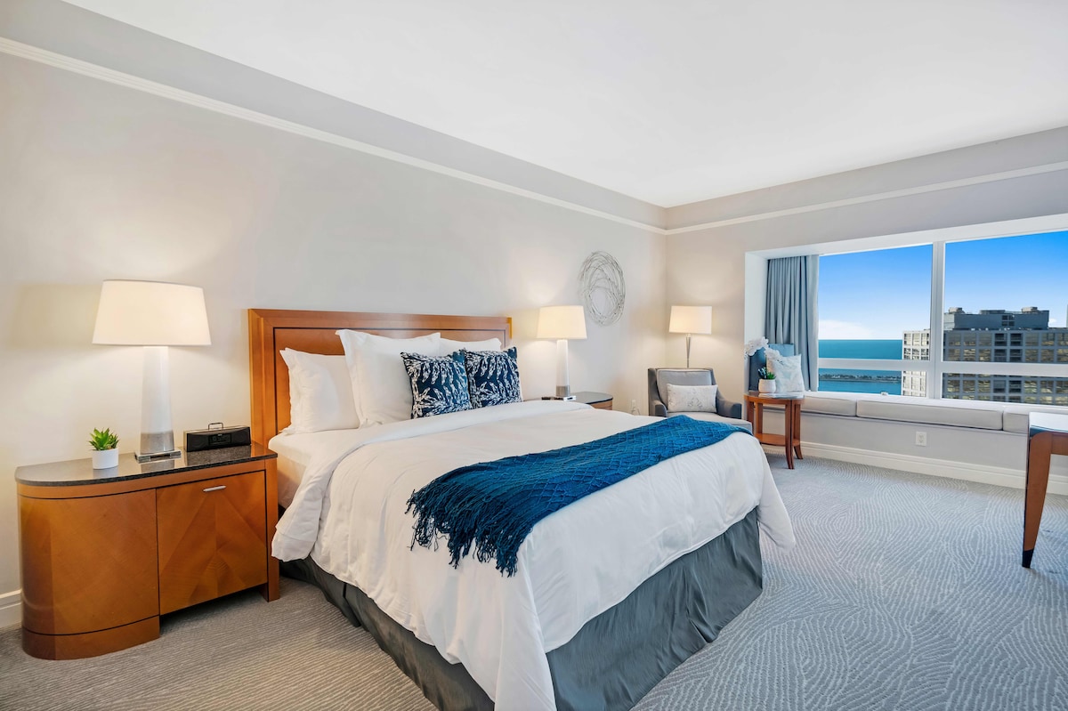 枫丹白露小型套房,配备加大双人床,可欣赏海景。