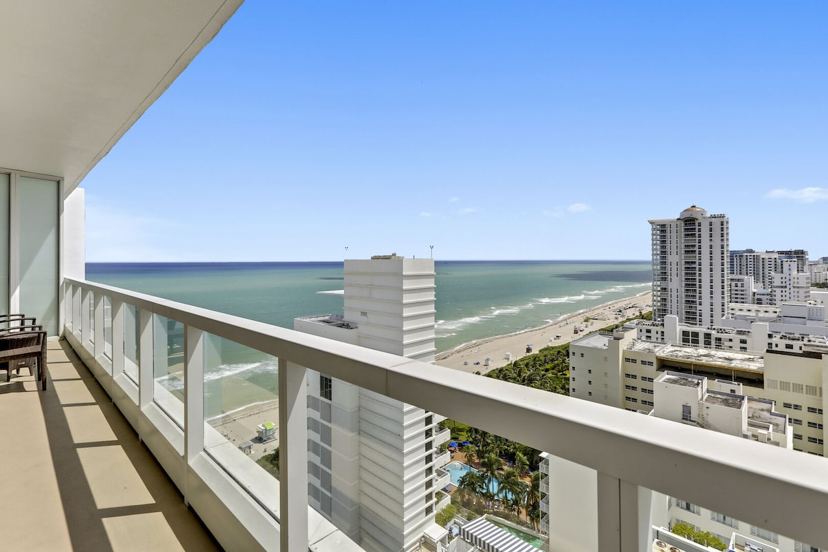 Enjoy this modern, open floor plan and ocean view Jr. Suite at the world renowned Fontainebleau resort. This unit is located in the Sorrento tower which is closest to the beach, you have a gorgeous balcony on the 10th floor that gives you ocean views while also viewing the Miami skyline. This Studio includes: -Complementary valet for 1 car. -2 Lapis Spa passes. -Free high speed internet. -gym access, with Beach Views! -Direct beach access with loungers See below for cleaning fee.
