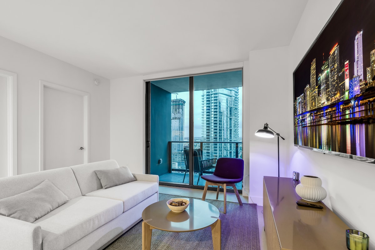 Enjoy a stylish experience with breathtaking views, our Brickell Miami condo provides all the pleasures, perks and pampering of a hotel but in a fully finished-private luxury residence. Ideally suited for leisure seekers, our high rise unit is located at the ocean edge with amazing views of the bay; perfect spot to watch the sunrise from your spacious outdoor patio complete with a hammock. Perfect location - 10-15 mins away from South Beach, Cruise Terminal and Miami airport.