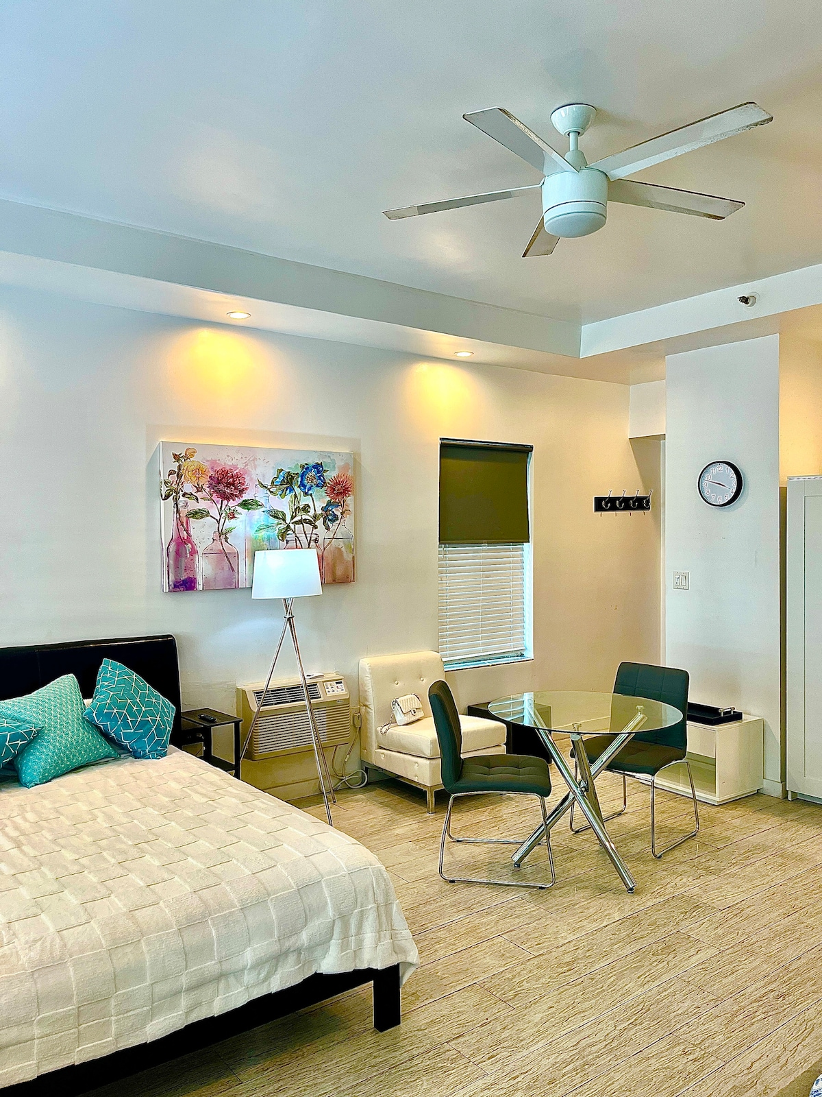 Enjoy a vibrant Art Deco retreat in South Beach’s exclusive South of Fifth neighborhood, just steps from the ocean. Nestled in a quiet part of Ocean Drive, this charming space is near parks, dog-friendly areas, and open-air fitness spots. Explore a diverse dining scene, from cozy eateries to Michelin-starred restaurants, with nightlife just a short stroll away. This thoughtfully designed unit features a king bed, workspace, DirecTV, and all the essentials for a memorable Miami Beach getaway.
