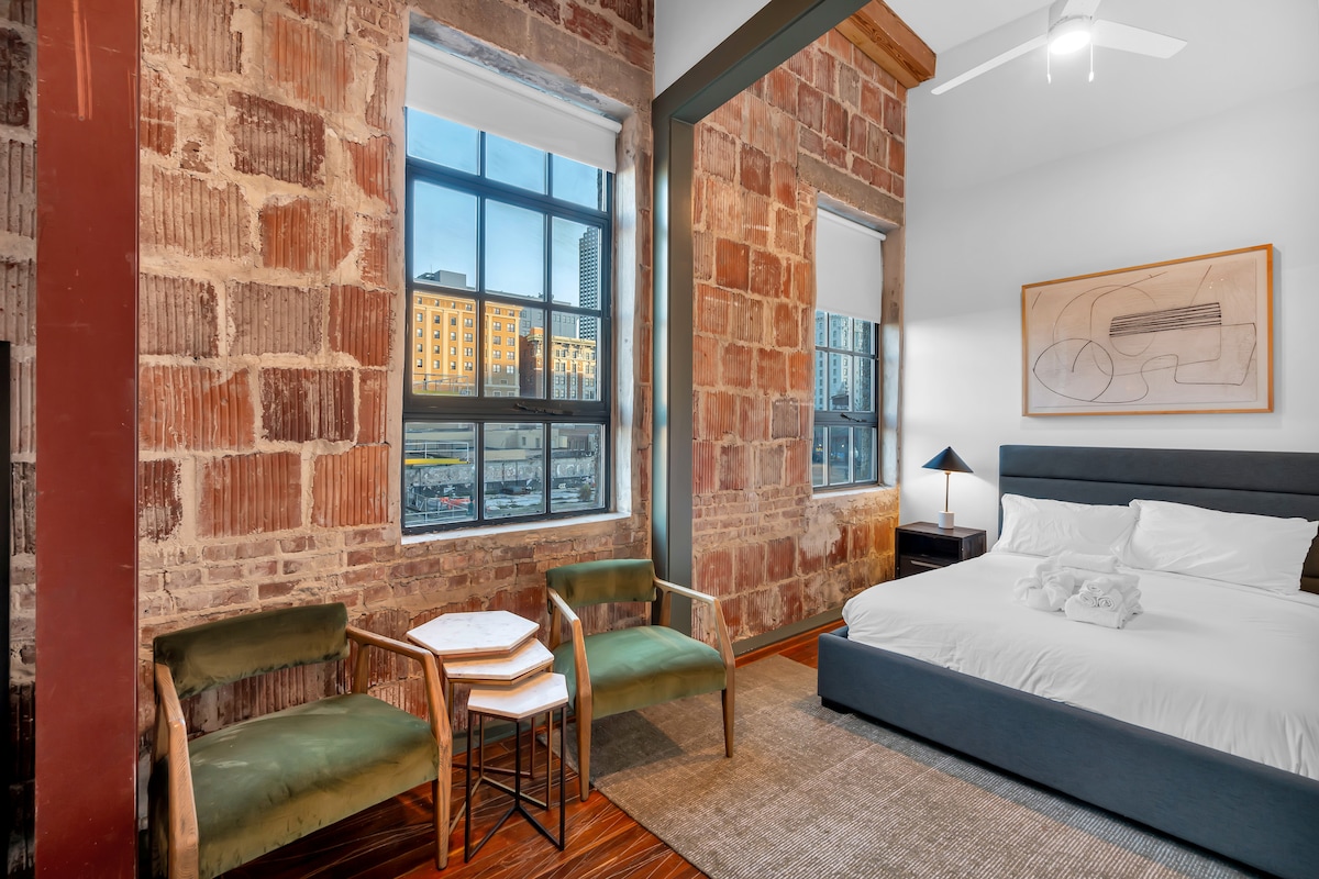 Experience New Orleans charm and modern luxury in this vibrant, 4-bed, 4-bath suite. Situated on the famous St. Charles Ave streetcar line, a few steps to Tito's Restaurant & Bar, walkable to the French Quarter, and Downtown. Beautifully renovated historic building with exposed brick walls, high-end finishes, and bold colorful design. This property brings the spirit of New Orleans to life. Spacious living room, fully equipped kitchen, everything you need for your stay. Outdoor pool with turf.
