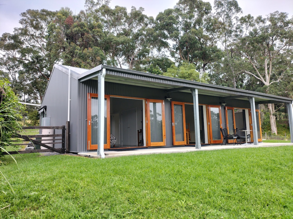 Off Grid, pet friendly, peaceful, semi rural setting on 10 tranquil acres close to lakes & beaches. Leave all your worries behind as you relax in a hammock & read a book among the gum trees or sit on the north facing deck & watch the bird antics or clouds drift gently by. Fall asleep to the frog lullaby & awaken refreshed to the native bird calls. Araluen is the perfect getaway from the hustle & bustle. If you're like us, You'll never want to leave.