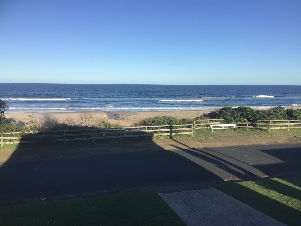 Amazing views of the Pacific Ocean from guest deck through to lounge/ kitchen Direct beach access for surfing,swimming,fishing,bushwalking,cycling trails closeby Relax to the sounds of the ocean from guests downstairs secure and completely private suite with air con ,2 queen bedrooms,kitchen prep area has jug,toaster,3 in 1 microwave airfryer,convection oven,bar fridge etc. Continental breakfast provided . BBQ long stay Large lounge room,bathroom seperate toilet laundry Walk to many Restaurants