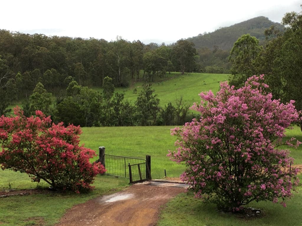 Lenoroc is a 101 acre (40 Ha) farm 15 minutes drive west of Wingham at Charity Creek on the road to Mount George. Your accommodation is in separate cottage, with Queen Bed in Bedroom 1, Two King Singles in Bedroom 2. Enjoy the swimming pool and gardens and see the Cattle grazing over the fence. Our guests can walk or 4WD (yours) over the farm, or simply relax on the wrap-around deck watching the cattle, and weird Guinea Fowl .