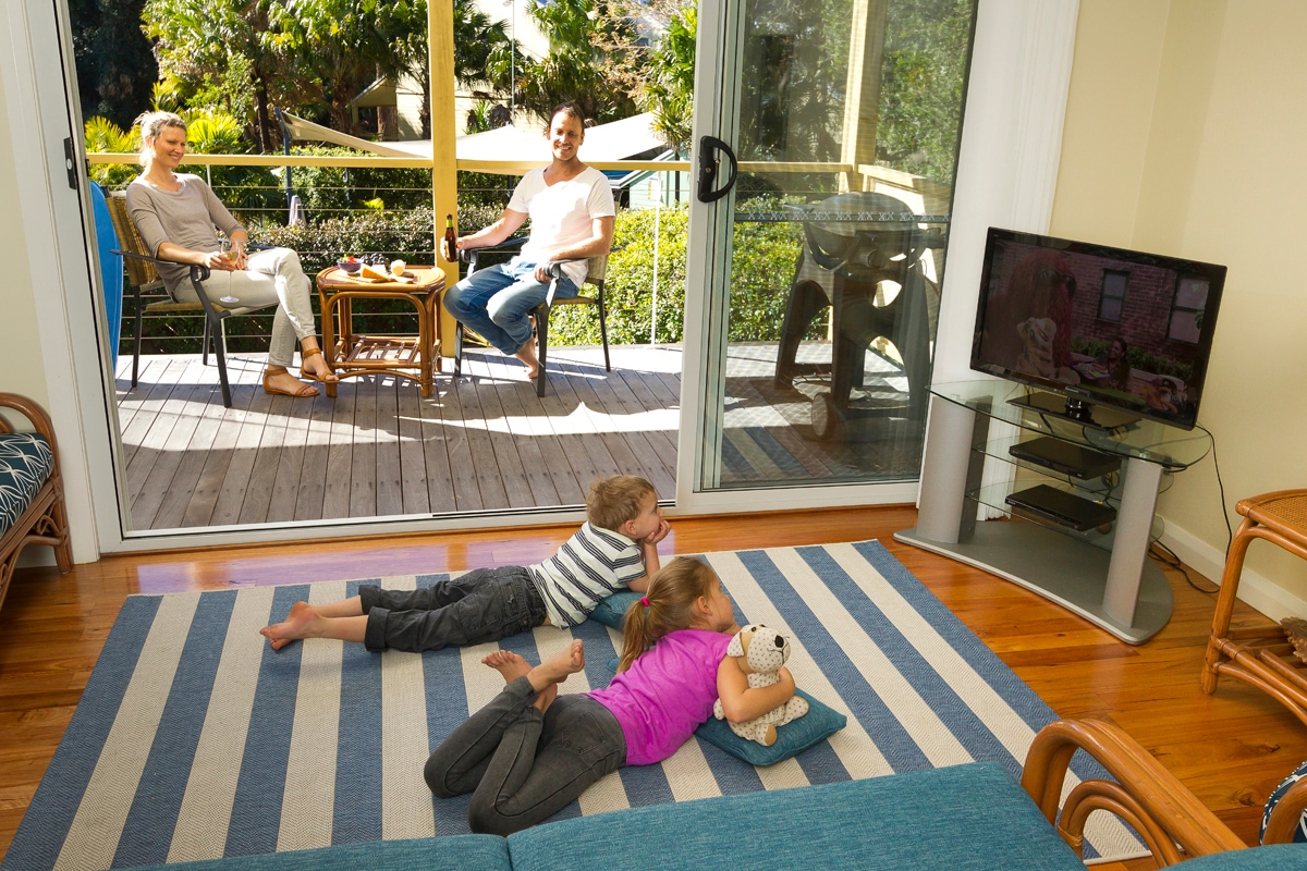 Our home is the perfect spot for your next holiday. It boasts a beautiful kitchen with loads of space and walk in pantry. The kitchen is fully equipped with dishwasher, microwave and other handy kitchen appliances, tea, coffee and sugar. Bright and airy the home has an open plan lounge/dining area to relax in and opens on to a side deck and spacious landscaped front courtyard with BBQ. It boasts 3 upstairs bedrooms with main bathroom and downstairs bedroom with ensuite, 3rd toilet in laundry.