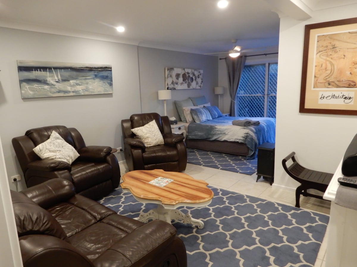 This is a spacious and comfortable private room in our home, located close to Coffs Harbour city in a quiet and pleasant neighbourhood with a beautiful reserve behind the house. Ideal for solo travellers or couples, the room accommodates up to two guests and features a single bed plus a floor mattress, a desk, ceiling fan, and a built-in wardrobe with hanging and shelf space. A shared bathroom and separate toilet are conveniently located right next to the room, and fast Wi-Fi is available.