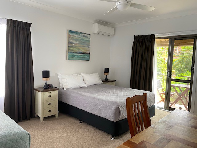 Spacious 3-bedroom retreat, minutes’ walk to Mullaway Beach. 8 minutes from the Pacific Highway, 25 minutes north of Coffs Harbour. The space • 1 Super King, 2 Queen bedrooms + single foldaway • Lounge & kitchen • Bathroom & egg bath & double shower, 2 toilets • Front veranda & garden Guest access & privacy You’ll have exclusive use of the huge front section with private entrance and outdoor areas. The rear is not part of the guest space. We may be on-site at times using a separate entrance.
