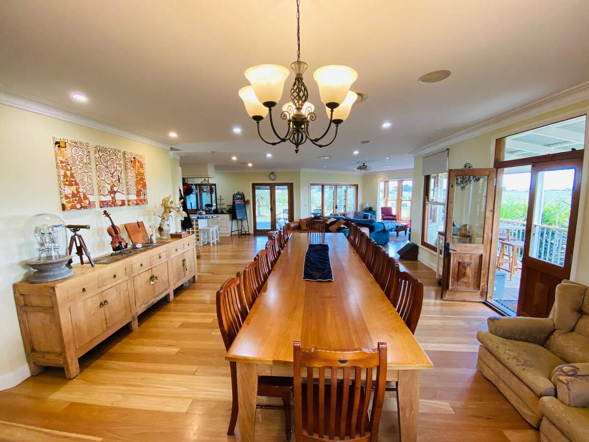 Grand Acreage House in a 2.3 acre property in Ironbark Estate - Hotel feel! Perfect long-stay base for mining/project teams. 5 spacious bedrooms (1 king, 4 double beds) 3 toilets & 2 baths/showers – ideal for early starts. Washing Machine & Dryer Private backyard bushland – quiet & restorative Parking for up to 6 vehicles Complete kitchen: dual oven, dual dishwashers + BBQ 85" home theatre (3 TVs) 3 min to shops (Coles/Aldi), 5 min to town. Long-stay Company discounts – enquire now!