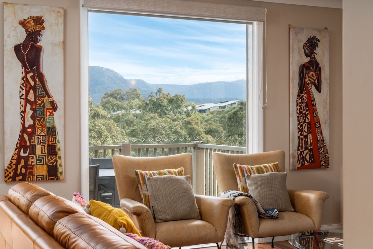 Located in the heart of Pokolbin in Cypress Lakes Resort, this adults only, sun drenched villa has 2 bedrooms with private bathrooms, mountain views, gas fireplace, air-con, and is surrounded by wineries, restaurants, Hunter Valley Gardens, markets, concert venues, onsite bistro, bar, golf course and electric bike hire. The resort is unique - it's elevated, surprisingly quiet and has abundant native trees, birdlife and kangaroos and there is a small pool within a few minutes walk.