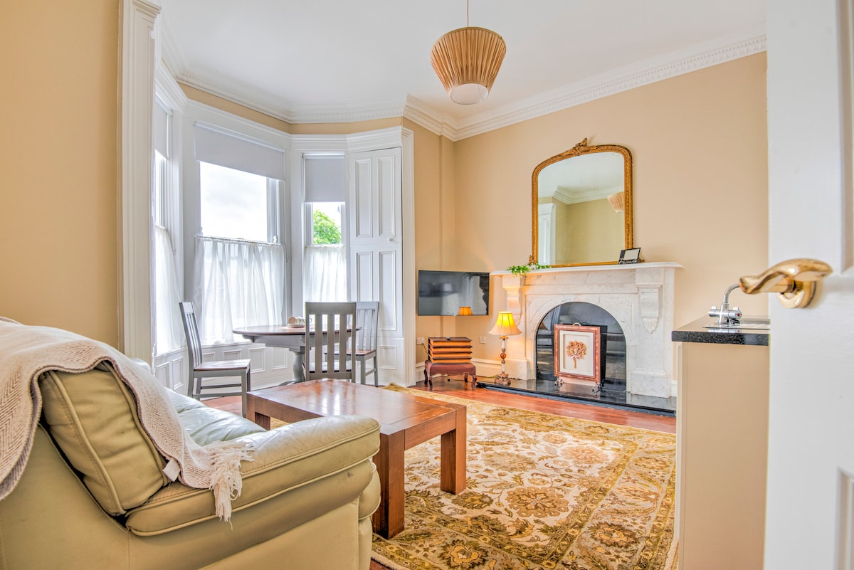 Bright and modern one bedroom apartment. This apartment is situated on the second floor of a Victorian House across from the Mall in Armagh City. It has been completely renovated by an architect while keeping its original Victorian features intact. There is a separate living area with TV and comfortable seating. The apartment has one double bedroom.