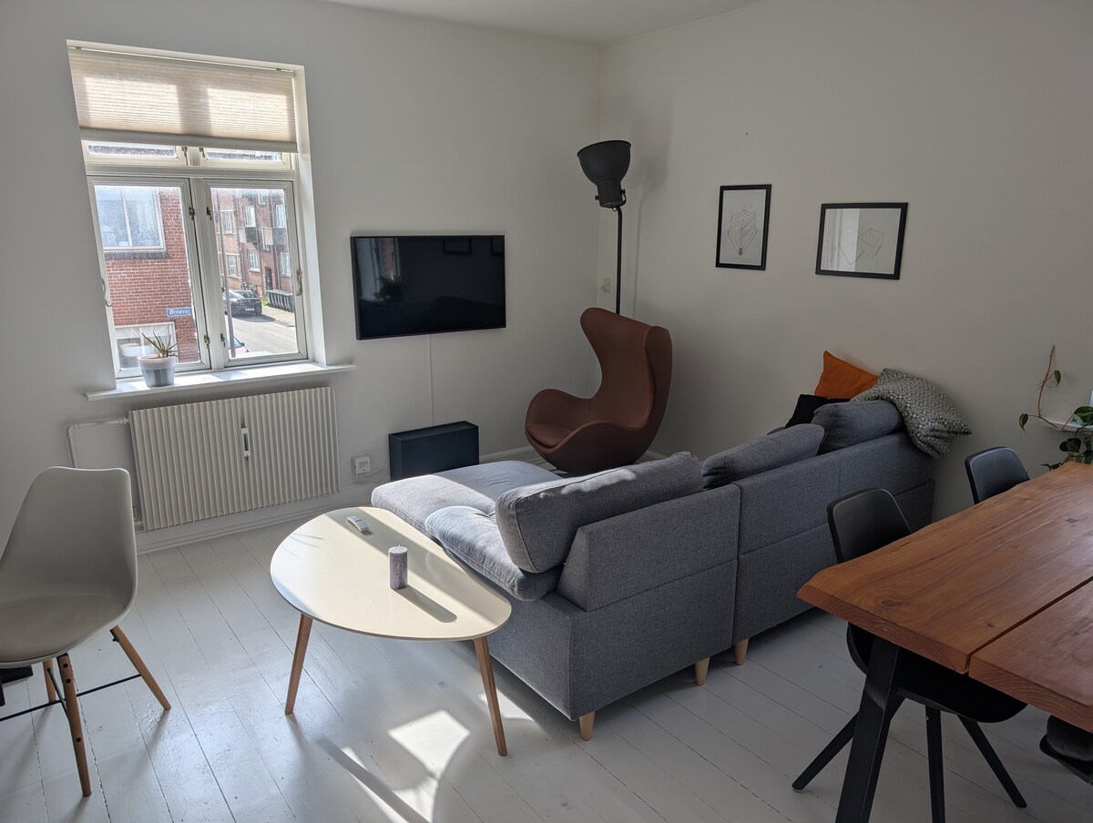 Charming and beutifully decorated 94 m2 apartment in the center of Middelfart. First floor. With a small wiev to the sea and very close to shopping, Restaurants, the harbour, Cinema and the nature park of Lillebælt, Bridgewalking and Clay museum. There is 1 big bedroom with a queensize bed and a single bed. In the livingroom there is two 140 cm beds. Free Parking close by. Coffee and tea facilities and a kitchenette. Min. Age of booking 25 years. Families are welcome. Babybed can be arranged.