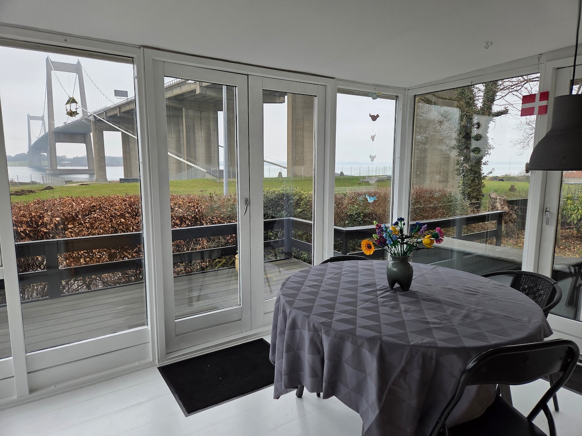 Separat lejlighed på 90 m2 i nederste etage med egen indgang. Fra terrassen er der 180 graders vand udsigt ud over Lillebælt. Fire sovepladser + 2 børn på underlag. Stor stue med 2 sovepladser, soveværelse, bad med sauna, køkken med alle faciliteter + vaskemaskine og tørretumbler. Gratis internet (Netflix) og TV kanaler. Vin, øl og vand kan købes. Gratis parkering lige udenfor døren. Lejligheden er nederst i en 220 m2 dejlig villa, som ligger med 180 graders vand udsigt ud over Lillebælt