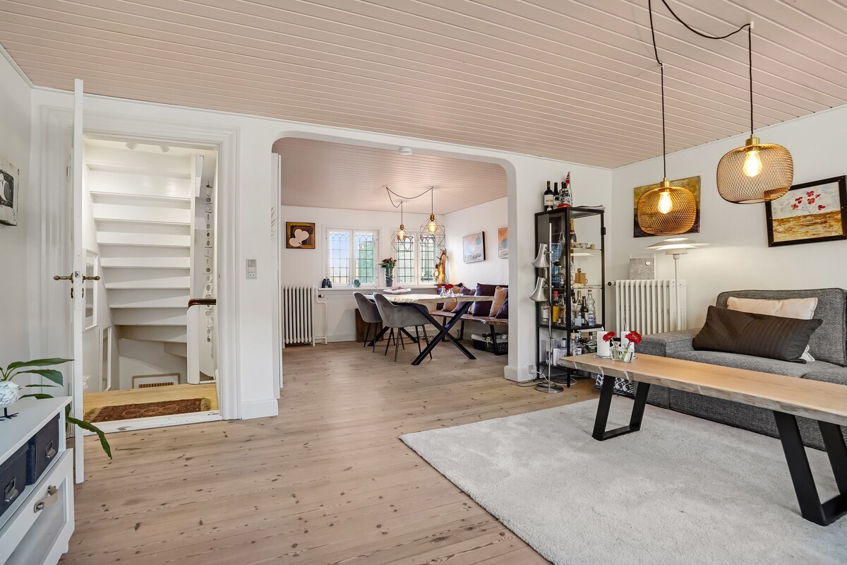 Charming and beutifully decorated 94 m2 apartment in the center of Middelfart. First floor. With a small wiev to the sea and very close to shopping, Restaurants, the harbour, Cinema and the nature park of Lillebælt, Bridgewalking and Clay museum. There is 1 big bedroom with a queensize bed and a single bed. In the livingroom there is two 140 cm beds. Free Parking close by. Coffee and tea facilities and a kitchenette. Min. Age of booking 25 years. Families are welcome. Babybed can be arranged.