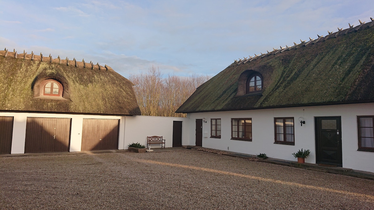 ”Skovgården” – 200 m fra havet. Indrettet med to værelser, nyere køkken i åben forbindelse med spiseplads og stue samt et lille toilet. Separat lidt primitivt baderum med vaskemaskine og køle-/ fryseskab. Stor terrasse med mulighed for sol hele dagen. Masser af havemøbler, kuglegrill og gasgrill. Mulighed for at overnatte i shelter. Børnevenlig strand med det skønneste, fineste sand. Der er basis for lange gåture samt badning. Ved lavvande opstår der små øer, som indbyder til leg.