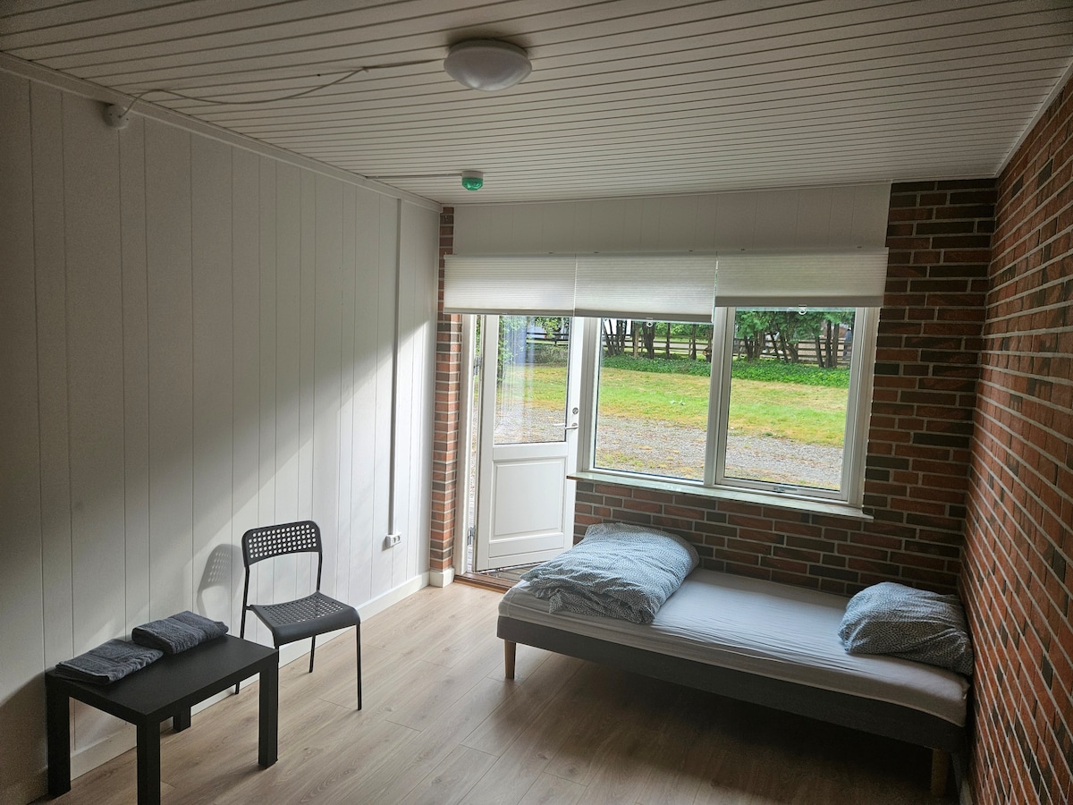 Tag en pause, og slap af i denne fredelige oase - omkranset af marker og tæt ved Bogense´s grønne hjerte. Lejligheden er minimalistisk men brugbar - lille toilet med bad, køkken med spiseplads med direkte udgang til terresse. Der er det mest nødvendige til køkkenet og ønskes der grill til terressen eller shelteren er det muligt. Gode parkeringsmuligheder lige udenfor lejligheden.
