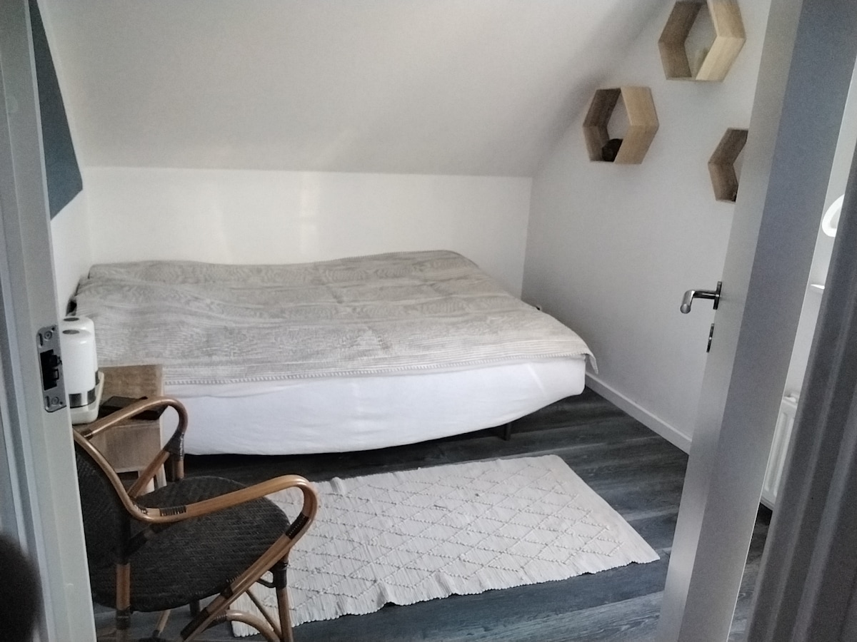 Roligt beliggende i udkanten af et villakvarter og med gå-afstand til Middelfart, Kongebro, Dyrehaven og Bridgewalking. Det er en etværelses beboelse med dobbeltseng og en stor hems med plads til flere samt en lille sofa, som også kan fungere som enkeltseng. Der er entre og et lille badeværelse. Boligen er ca. 49m2.