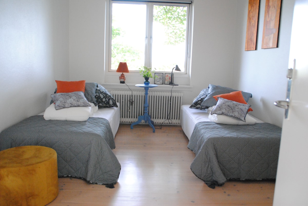 Besøg vores smukke gamle gård, Østergaard Asperup, som kan spores helt tilbage til 1688. Værelserne er i en sidelænge til huset og er helt nyrenoverede. 2 VÆRELSER DELER ET BAD. Fra gården kan man gå, cykle eller ride af den billedskønne allé igennem skoven, til den dejligste strand, på bare 20 minutter. Vi bor 5 minutters kørsel fra E20, 15 minutter fra Middelfart, 25 minutter fra Odense.