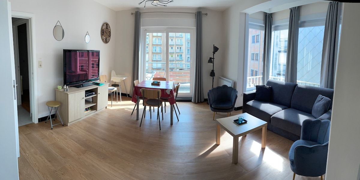 Relax and unwind in this peaceful, stylish space Studio on the 3rd floor surface area 41 M .The location of the studio is already top. A stone's throw from the sea, Whether you want to sunbathe on the beach, stroll through the shopping street or enjoy a delicious meal... it is all within walking distance! Our favorite spot of this studio is without a doubt the south-facing terrace. kitchen with all kitchen utensils It offers space for 1 to 3 people max (2 adults and 1 child).