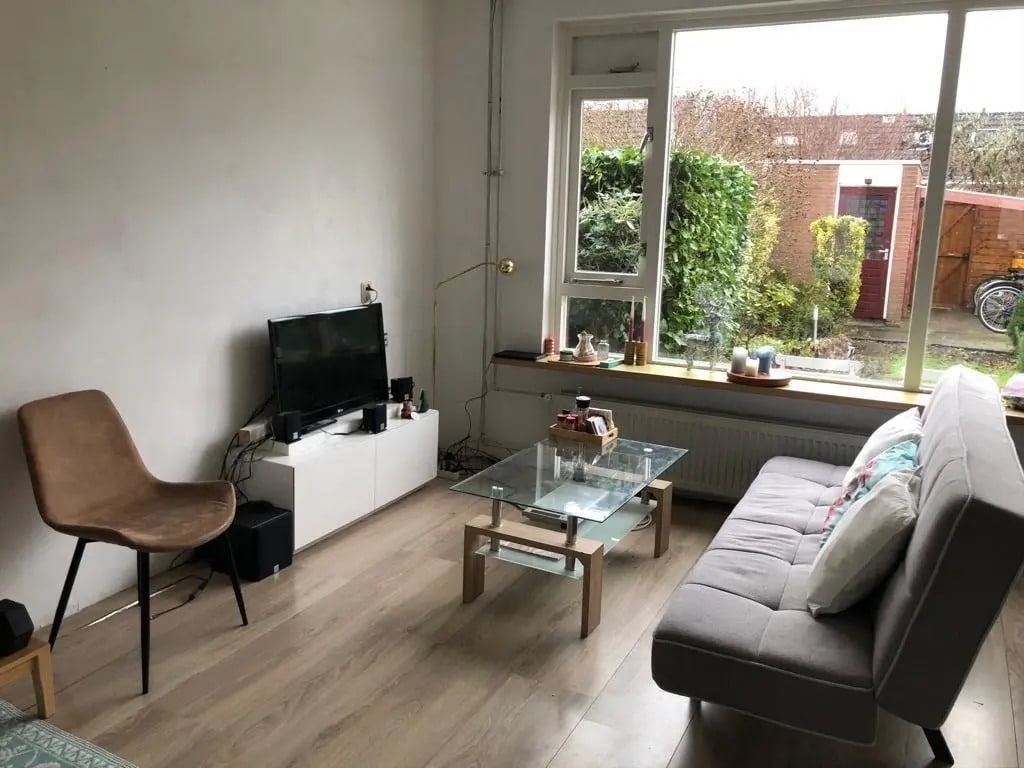 A brand new and spacious studio with a big balcony on the second floor with a view on a park. The studio contains a kitchen with a fridge, small freezer and cooking facility. It has large windows on both sides so the room is very light. The door to the balcony and the window all have a screen. There is free parking available. The city centre is only a 15 mins walk along a beautiful canal.