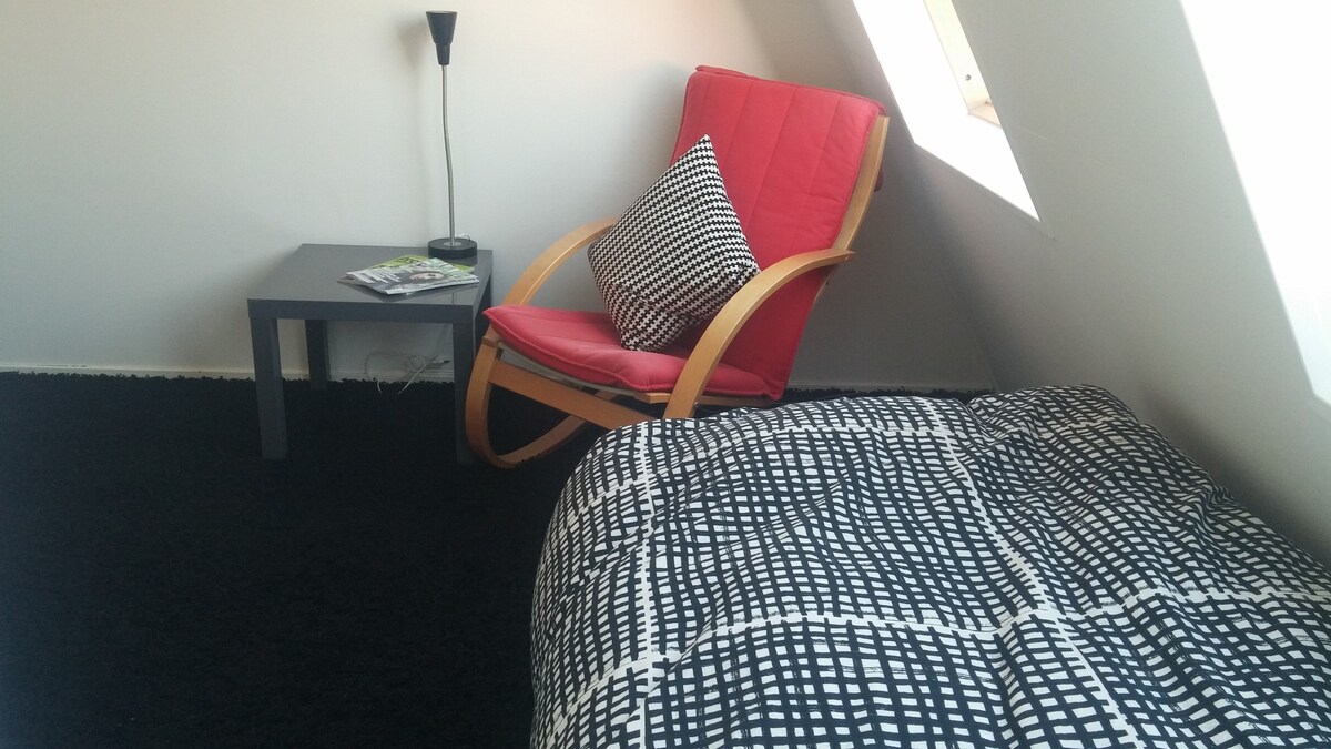 A nice 1-personsroom on the 2nd floor, well situated! It's in a quiet neighboorhood, just outside the citycenter (8 minutes walk) and near the TU (12 minutes walk), 5 minutes from the highway, freeparking a 7 minute walk. Good place to stay, especially when you come for the TU or to enjoy my lovely town. From the window you see the famous citytower. If you want to stay longer than 10 days contact me, I can do you a special offer. Touristtax (4.50 a night) must be paid by arrival.