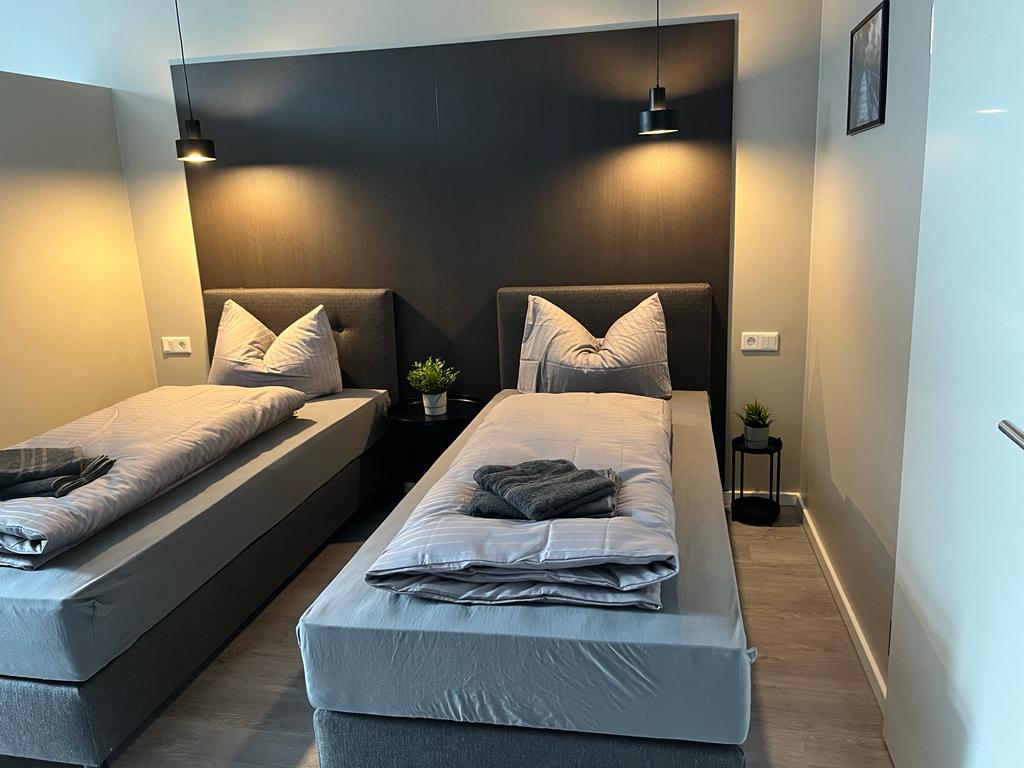 Relax in a deluxe room on the upper floor with 2 comfortable single box springs with a double topper, a bathroom (incl. shower gel, shampoo, conditioner, hand soap, body lotion, hair dryer), a chaise longue, a Nespresso coffee machine (incl. coffee capsules, milk, sugar and sweetener), kettle, tea, free wifi and a flat-screen TV. Parking is free at the property. Enjoy a blend of comfort, tranquility & style during your stay.