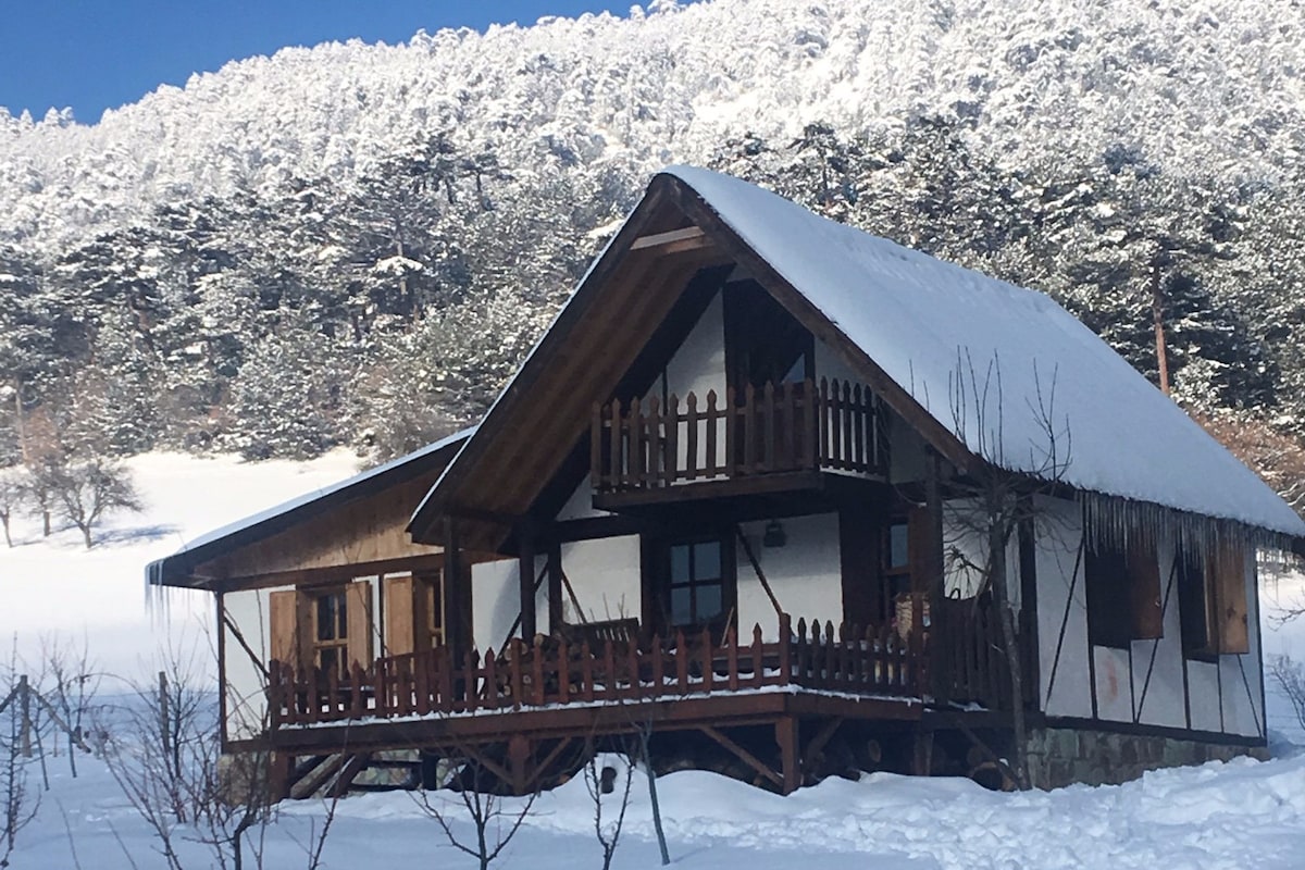 Mudurnuya bagli bir köyün, dag ormaninda ahsaptan yapilmis, etrafinda yalniz orman olan her seyden uzak ama konforlu ve modern dosenmis, harika yuruyusler yaparak ormani kesfetmek icin guvenli ve konforlu bir alan. Hem huzur hem de biraz macera diyorsan bu deneyimi yaşamalısın. Evde bir tercih olarak , gunes paneli ile sinirli elektrik vardir...Işık için mum ışığı, ısınma için şömine, sıcak su için odunlu termosifon kullanıyoruz.