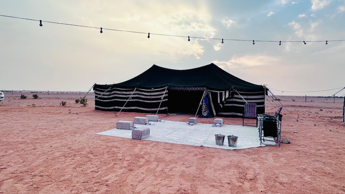 Authentic Desert Experience: The camp immerses guests in the raw beauty of the desert landscape, with traditional Bedouin-style tents and activities like camel rides, sandboarding, and star gazing, creating an unforgettable connection with nature. We have 10 tents , Each tent can Accommodate 2 Adults and 2 Kids less than 10years. with private bathrooms.
