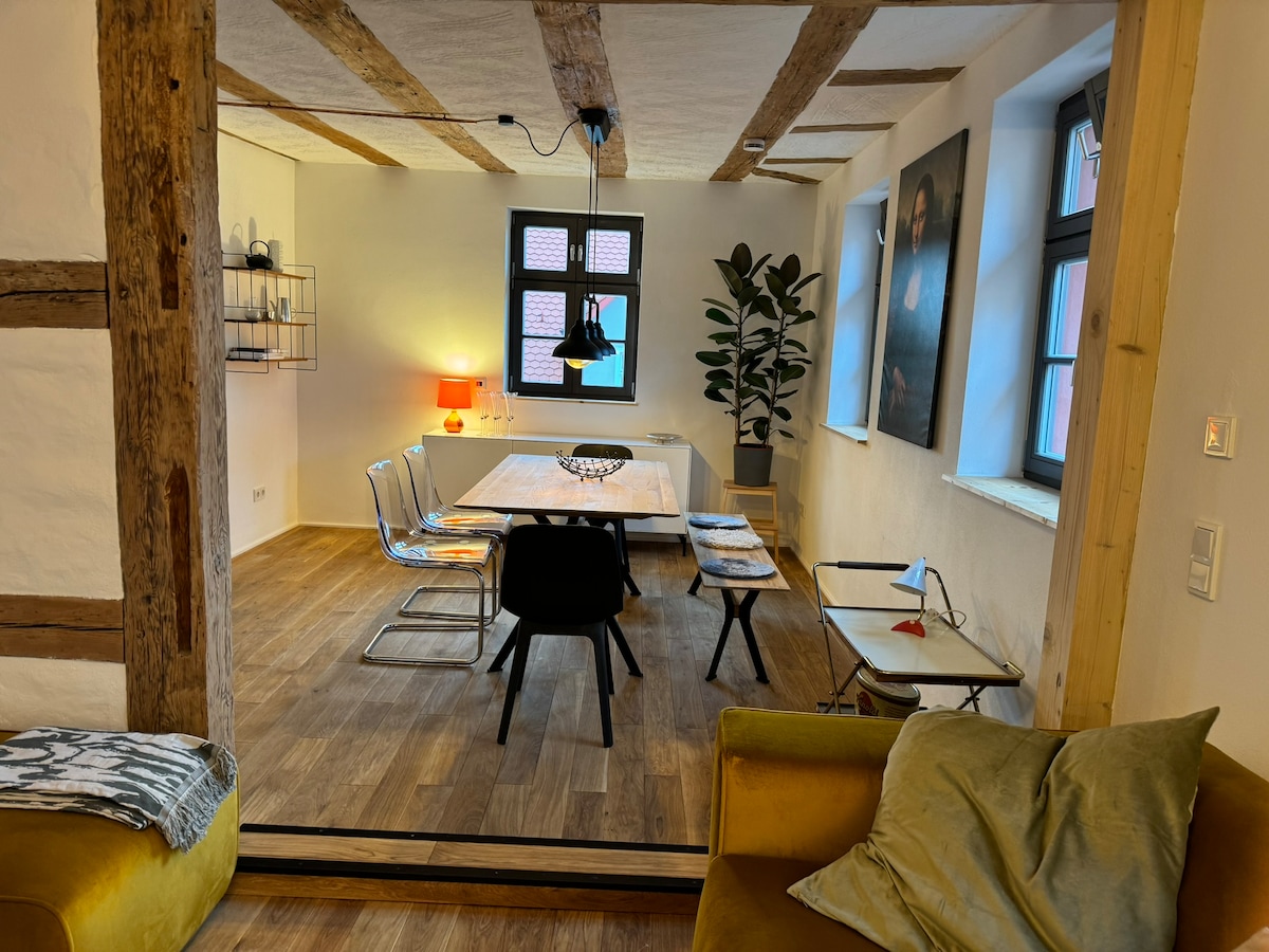 Stay in a charming apartment in a half-timbered cultural heritage building adjacent to the former cloister with hundreds of years of history! The central location and unique mixture of authentic historical flair and modern living amenities will make your stay an unforgettable experience. All of Rothenburg’s landmarks, museums, and restaurants are nearby. Delicious breakfast and one parking spot are included in your reservation! We use 100% renewable energy.
