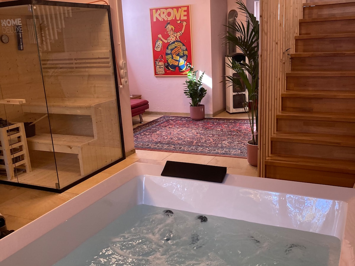 Willkommen in eurem privaten Spa-Retreat in der fränkischen Natur nahe Nürnberg. Das 100 m² Luxus-Hideaway ist ideal für Paare, Freunde und kleine Familien, die eine entspannte Auszeit suchen. Genießt den Outdoor-Whirlpool und die finnische Sauna auf der Terrasse mit Schlossblick sowie Infrarot-Sauna und Kamin im Innenbereich – alles exklusiv nur für euch. Separater Eingang, volle Privatsphäre und nachhaltige Beheizung mit Restholz aus unserer Zimmerei.
