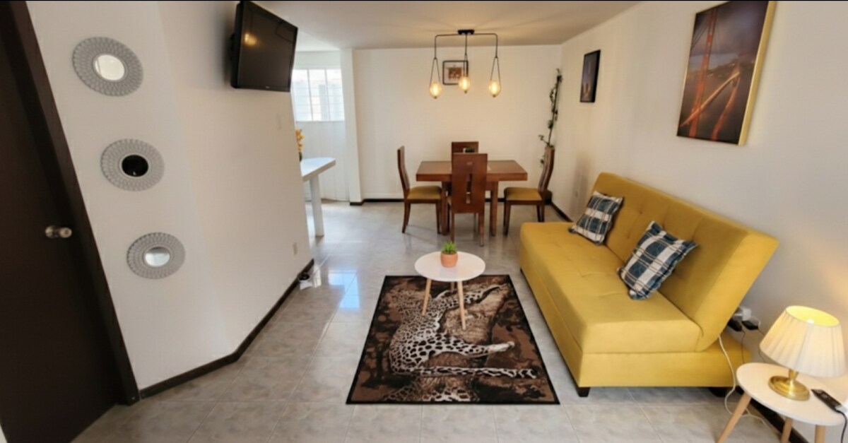 Cozy apartment remodeled in the colonial quarter of Quito, located on the third floor, a loft with a spectacular panoramic view of the Historic Center. It has two bedrooms, two bathrooms, a living room, a dining room, and a kitchen equipped with filtered water and essential implements to meet our guests' needs. The comfortable facilities provide good relaxation. We have Wifi 620Mbps a 1.05Gbps, a telephone line, a television with Netflix, and heaters for the shower and kitchen sinks.