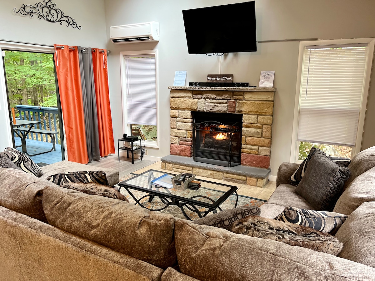 The perfect place to get away. Enjoy the beauty of mother nature, all seasons have something special to offer from the white covered snow mountains to the colorful multicolor fall or even better the fresh green covered mountains in summer. There are many spectacular views from the private gate community to the public Delaware Water Gap. This Chalet at the Poconos offers you quiet and relaxing nights with plenty of amenities included. Amenities hours here https://sawcreek.org/amenity-hours/