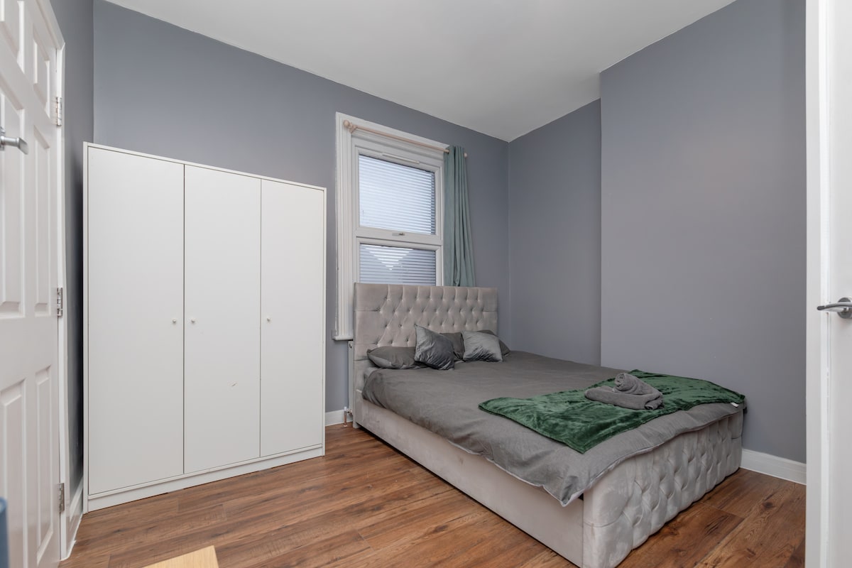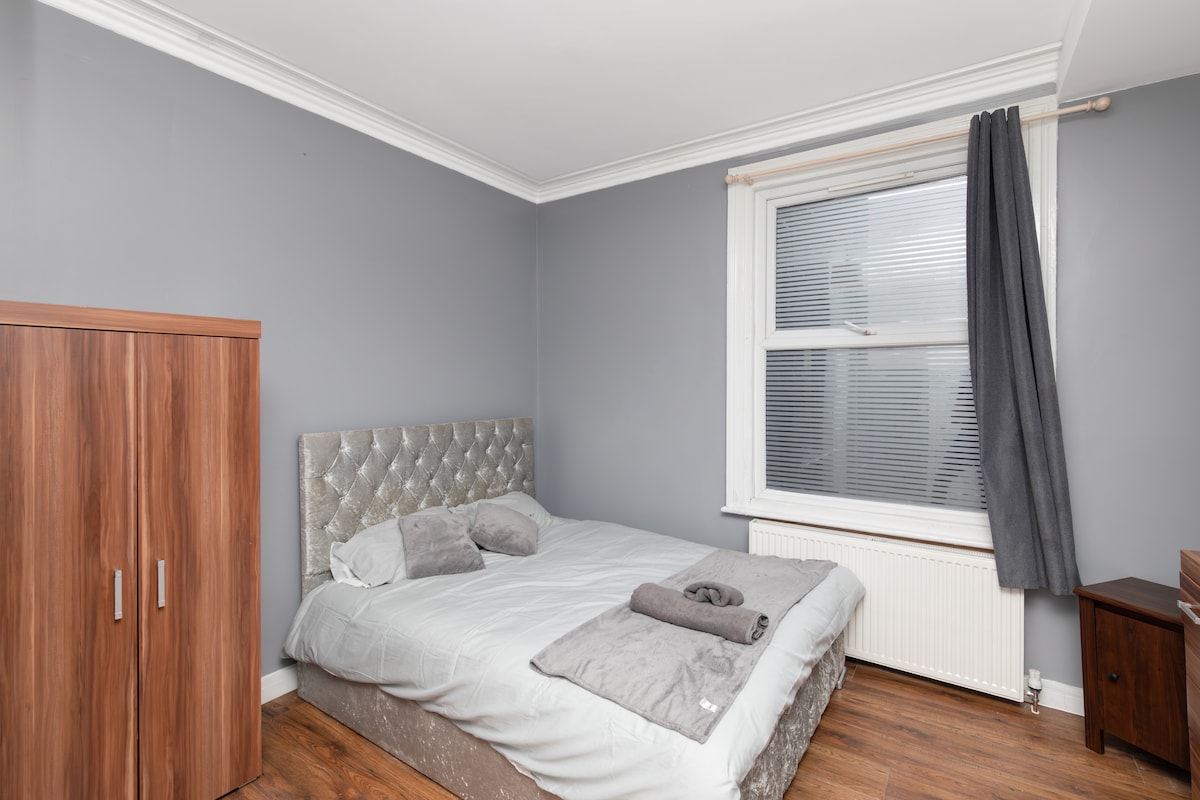 Modern quirky style decoration in this 3 bedroom house. ALSO offering *EV Charging. Perfect for families/groups. The master bedroom has a King size bed and office space offset. 2 x twin rooms giving flexibility. Bathroom with bath/shower. Extra toilet downstairs. Lounge/diner with comfortable 3 seater sofa and 3 chairs. Fully equipped kitchen with microwave, dishwasher, washing machine and essentials. Enclosed back garden with decking and pebbled area. Close to the station, town centre, theatre.