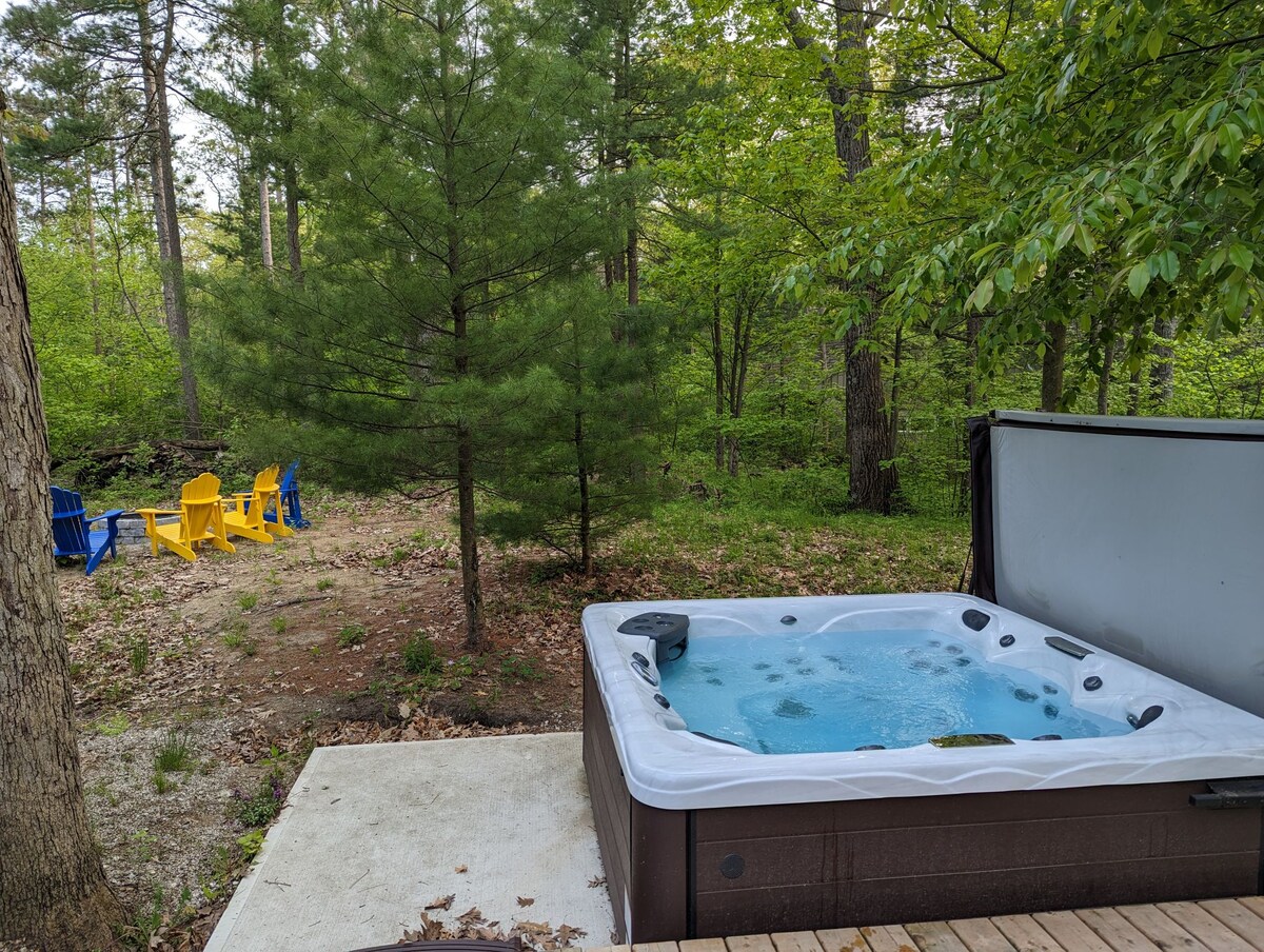 Welcome to our sweet little Nordic spa - A Retreat away from the hustle and bustle! Two bedroom year round beautifully curated A-frame cottage, with sauna, barrel hot tub & cold plunge. Enjoy a relaxing stay in our peaceful cottage for your Lambton Shores/Grand Bend, Ontario trip. The unit is equipped with AC, gas fireplace, Wifi, full kitchen, workspace, lounging patio. Our cottage is 15min away from Grand Bend beach, less than 10min to The Pinery. We look forward to hosting you!