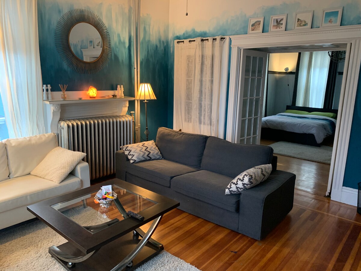 BOSTON MARATHON/WORLD CUP SPECIAL-SLEEPS 6 This spacious and luxurious 2BR apartment is just 10 minutes from Downtown Boston and is a few-minute drive from a numerous hospitals. The apartment is fully furnished and is well stocked with linens, housewares and kitchen equipment - ideal for long-term stays. The apartment is professionally managed to ensure quality service is being provided to our tenants. Kushala Sip, Coffee House and Tapas Bar, is located on the ground floor!