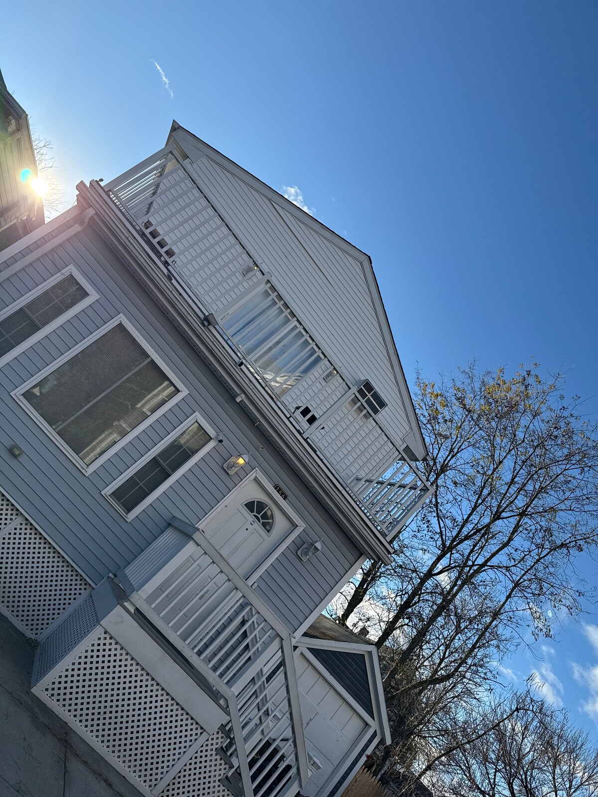 Price friendly, sunny second floor unit with 2 KING size bedrooms and new, private deck! Great layout for family or friends to share. Watch sunsets on the second level deck! A quick walk to Easton's Beach and Cliff Walk! You can't beat this location at this price! Newport lively night scene is also very close! Quiet neighborhood where it is safe to walk pets and for kids to ride bikes! Note: 3 unit apt building, so you can hear below and above= price point! Lovely new furnishings! Pets OK! AC!